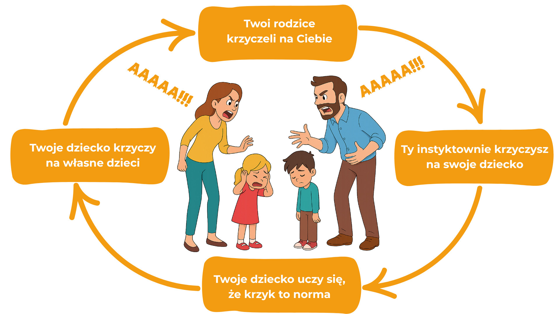 👉 Obniża zdolność uczenia się i koncentracji – szczególnie, gdy krzyk jest częsty i nieprzewidywalny.